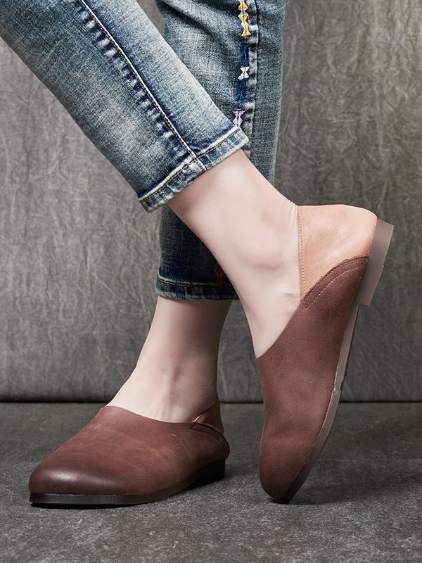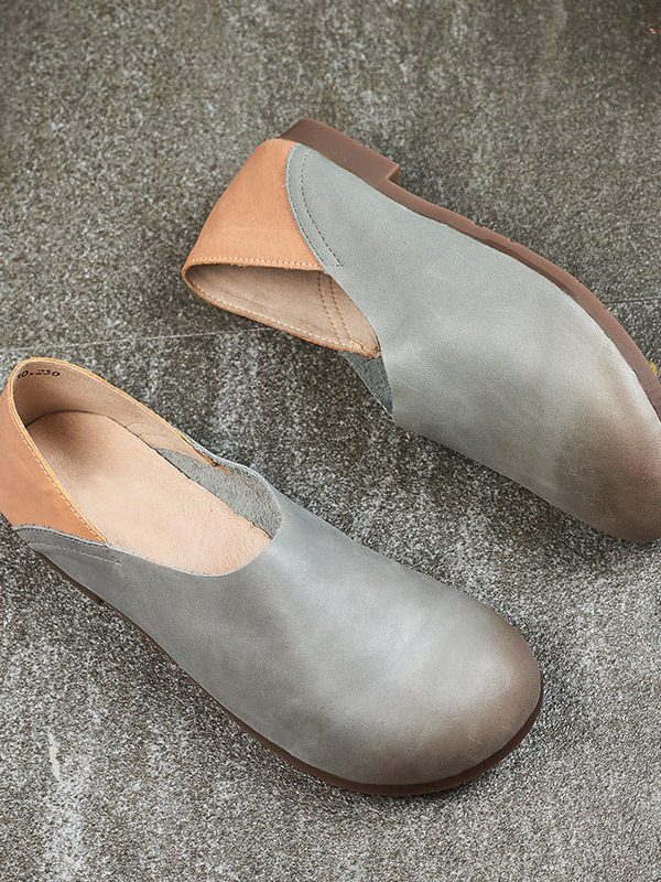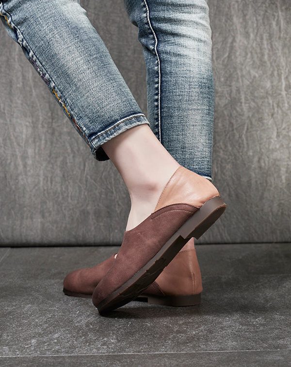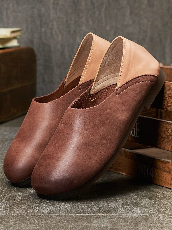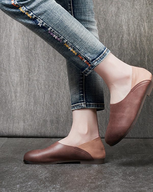 These stylish single shoes are made of top layer cowhide leather and feature a literary retro moccasin design. They are flat shoes that are perfect for everyday wear.