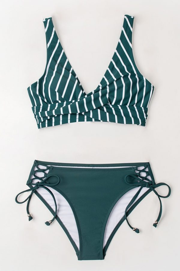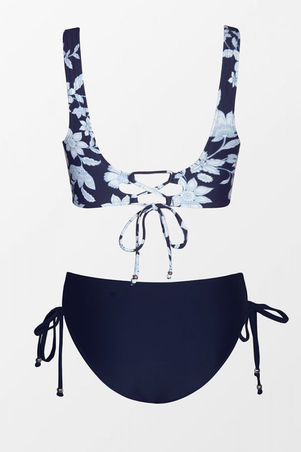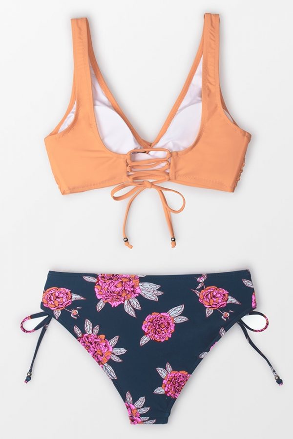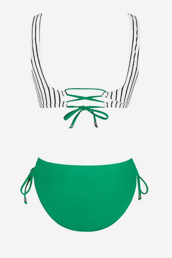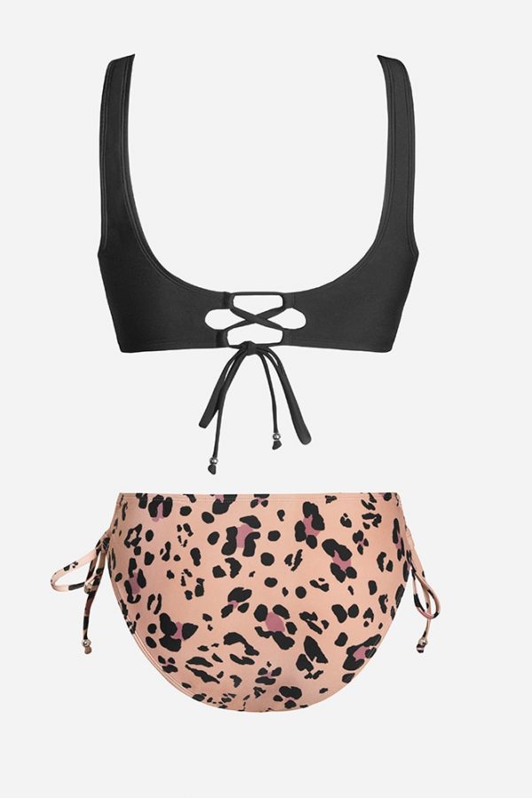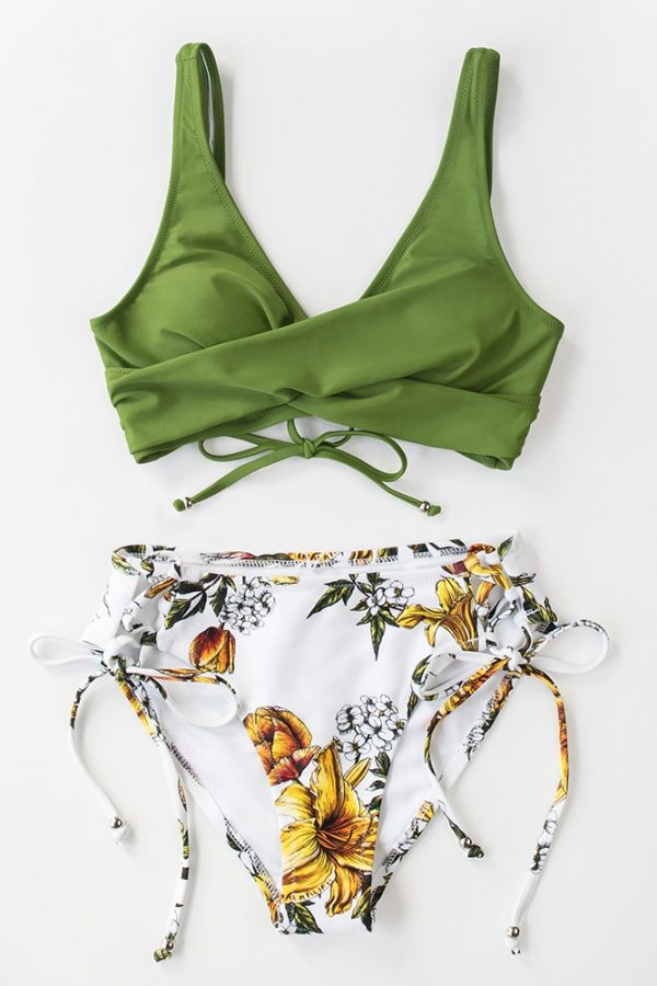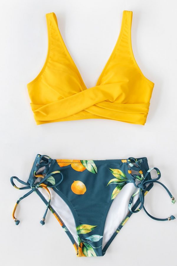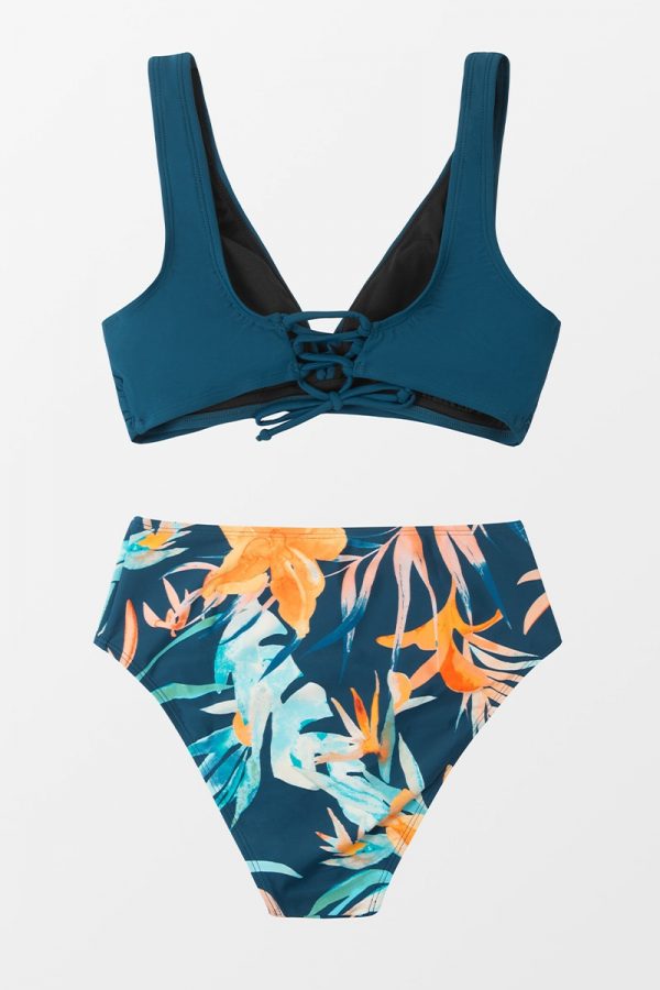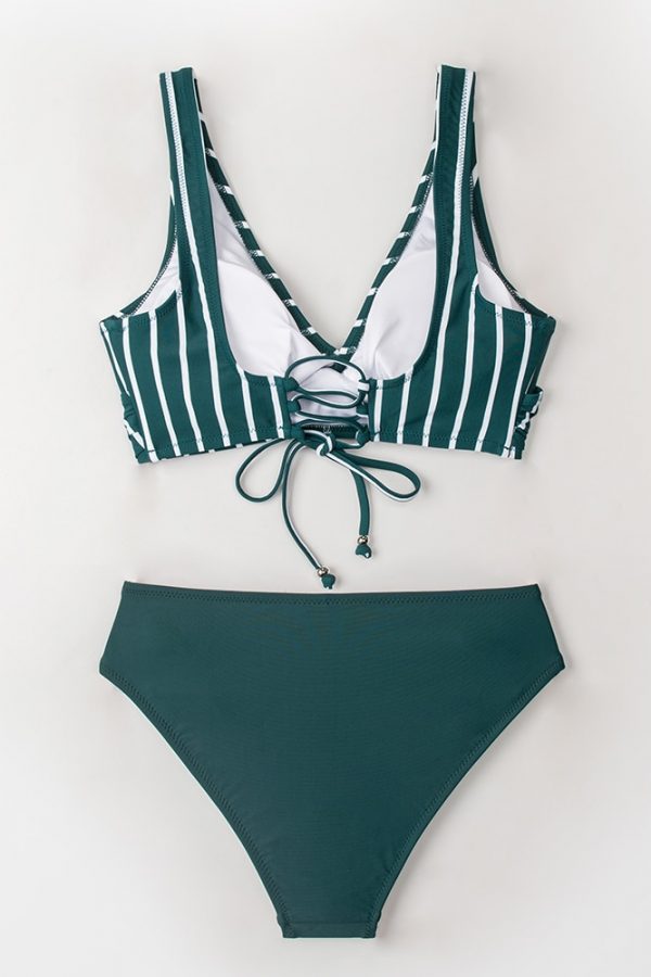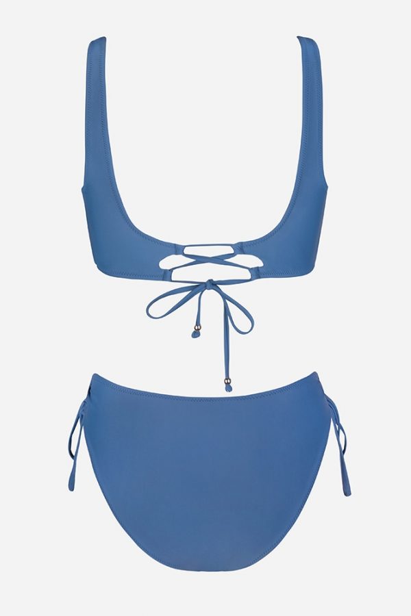 Mid-Waist Bikini Sets Swimsuit Women Lace Up Two Pieces Swimwear