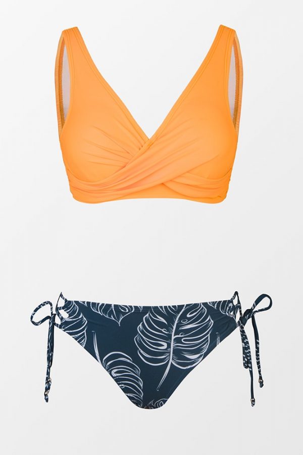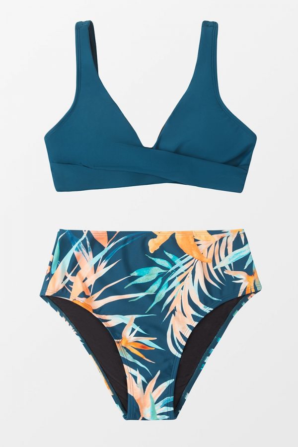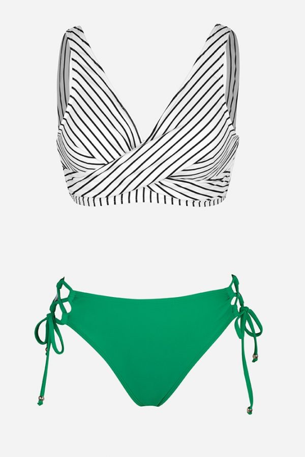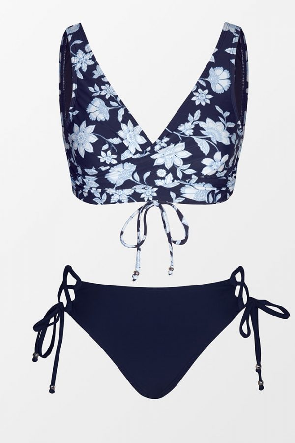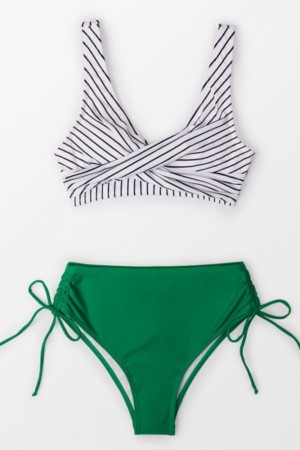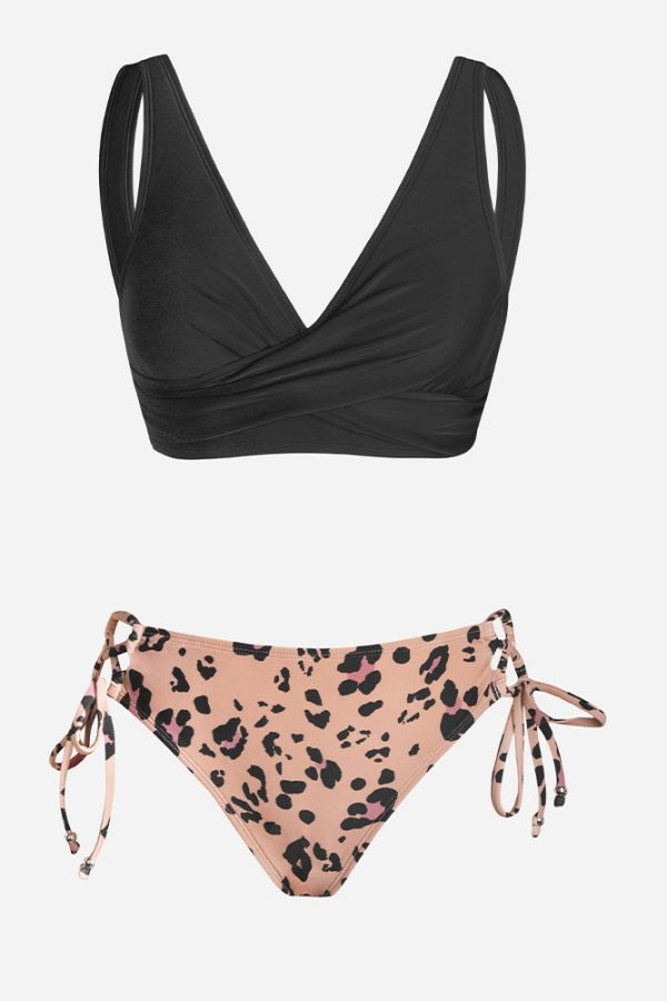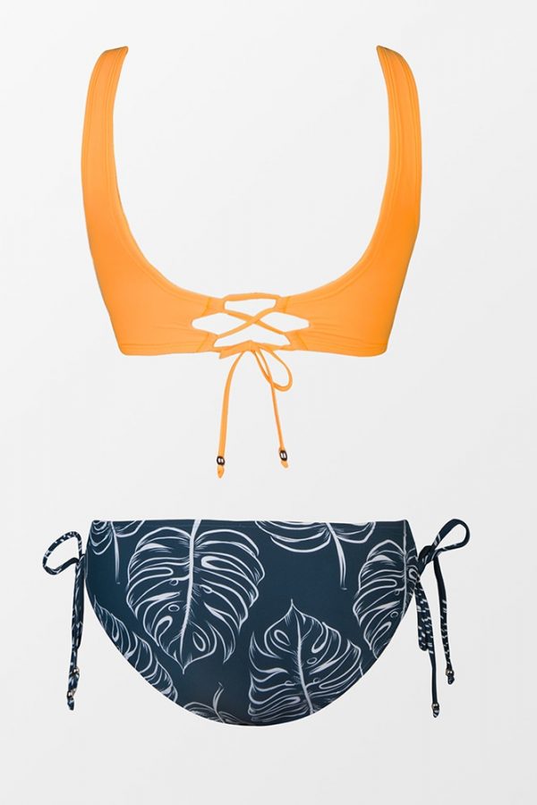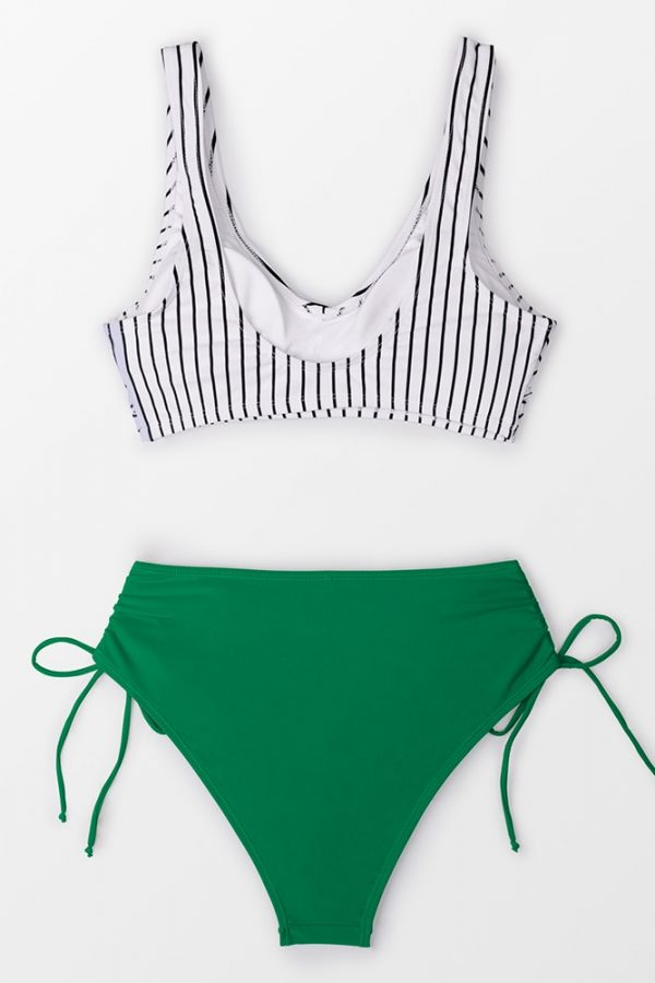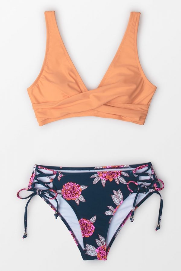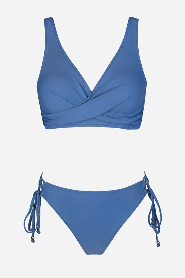 Mid-Waist Bikini Sets Swimsuit Women Lace Up Two Pieces Swimwear