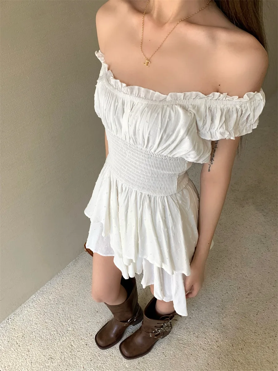 Summer Dress White Sleeveless Elegant Ruffles Casual Homecoming Party Dresses