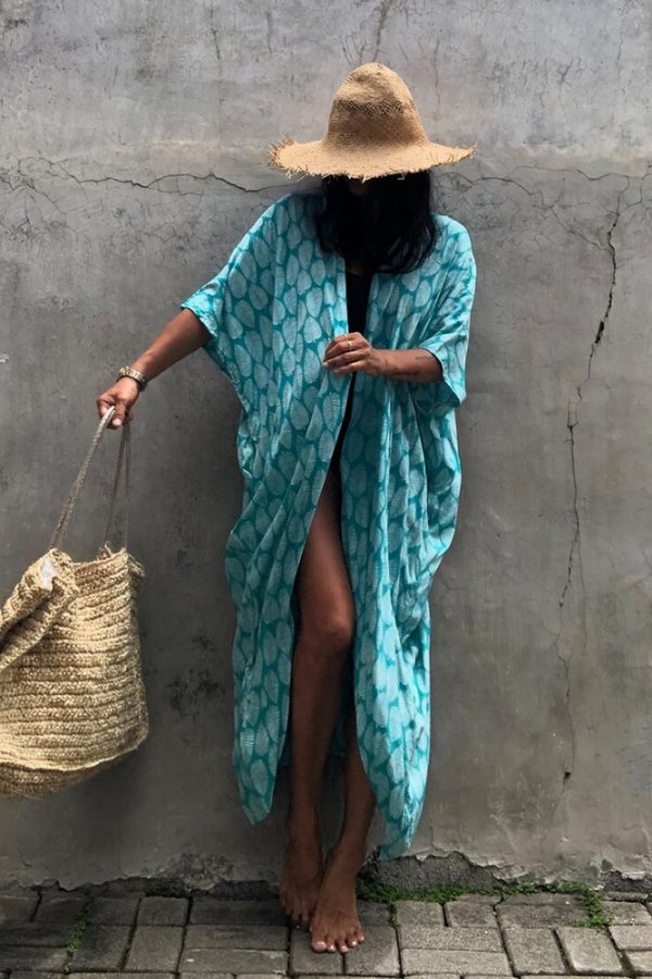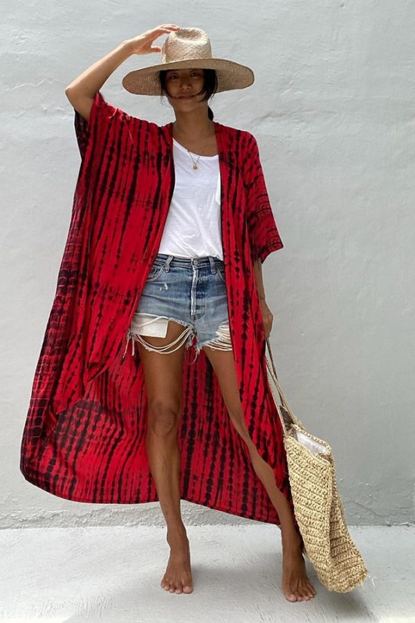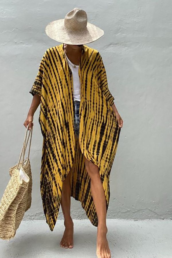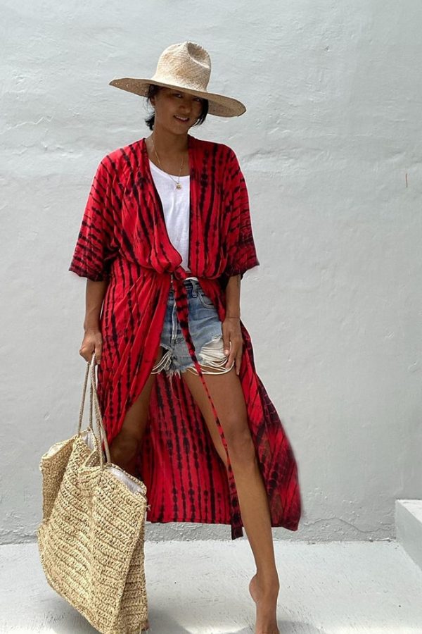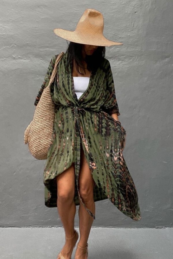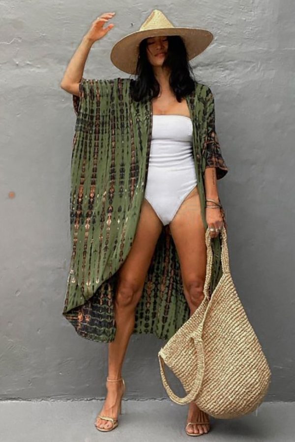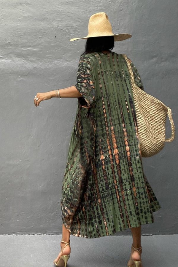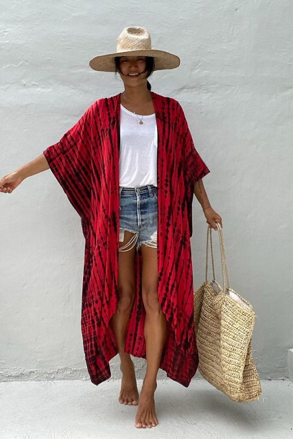 Summer Holiday Vintage Halo Dyeing Beach Cover Oversized Long Cardigan