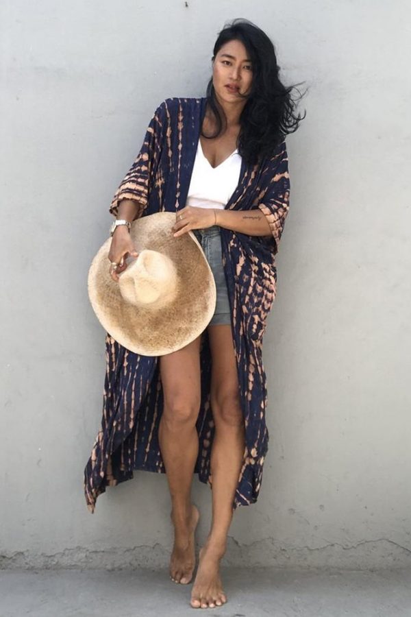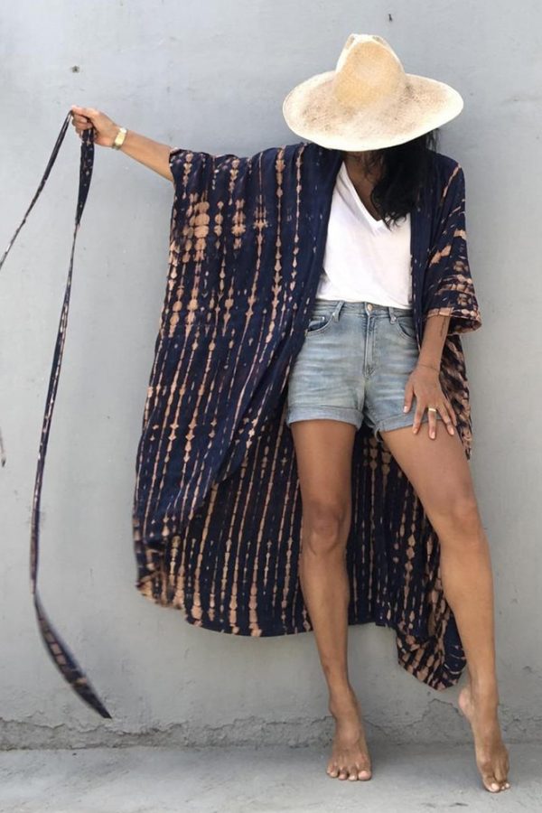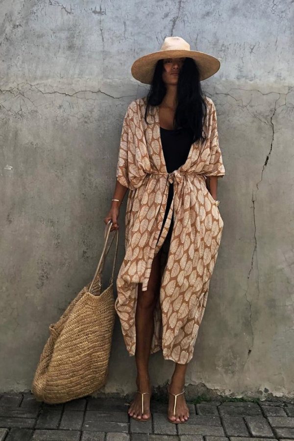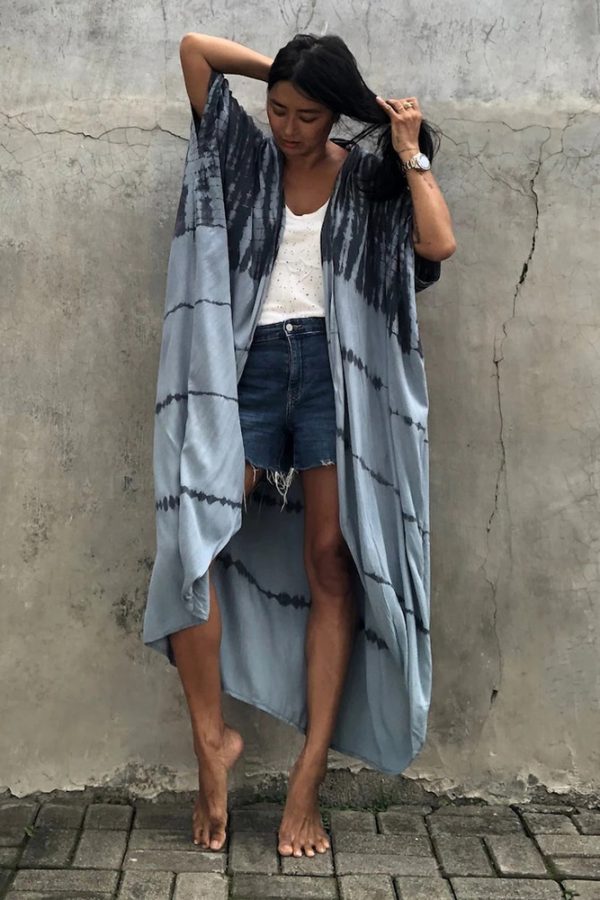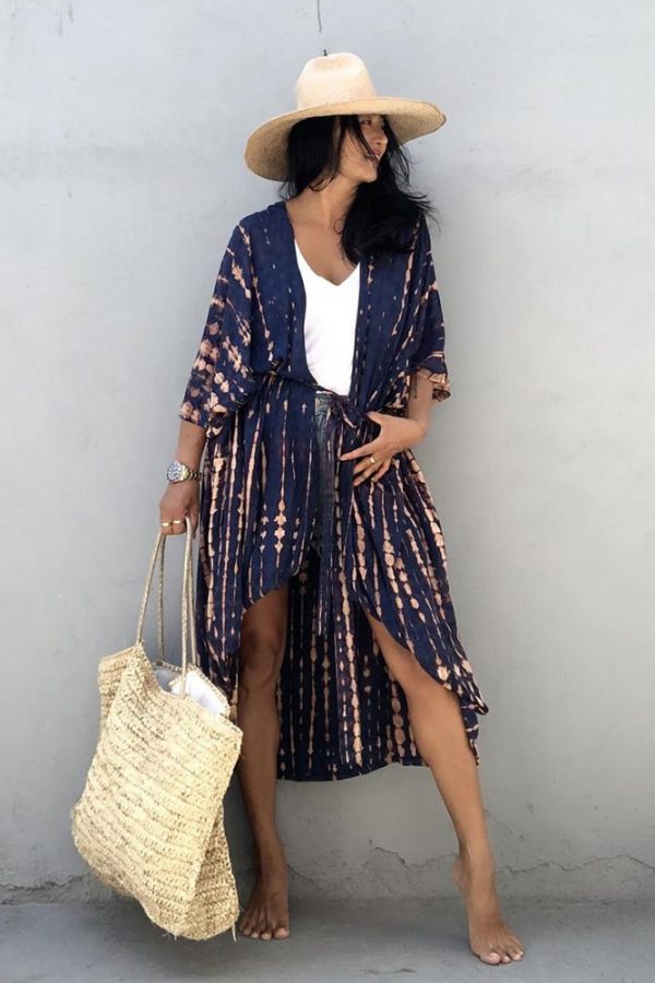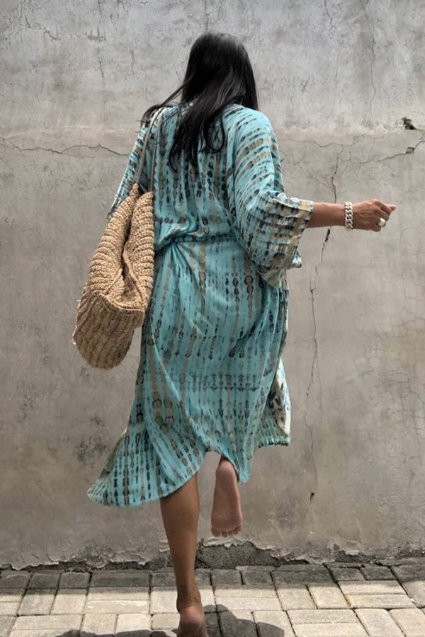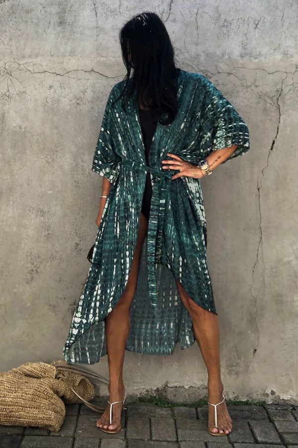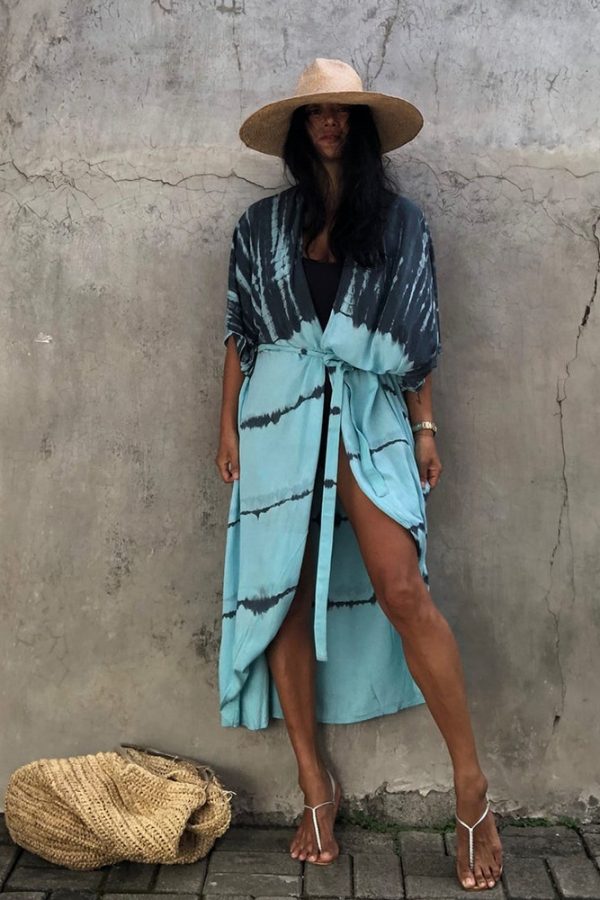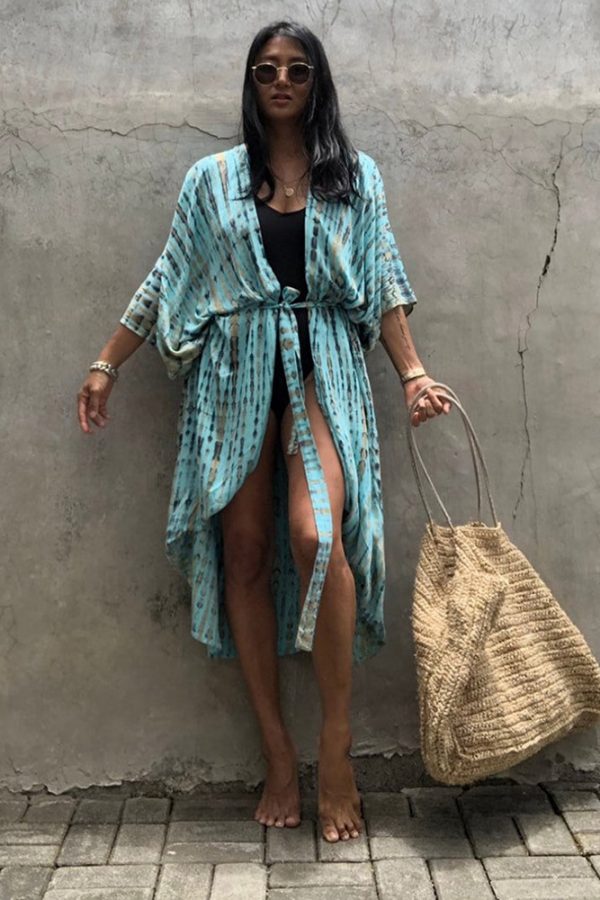 Summer Holiday Vintage Halo Dyeing Beach Cover Oversized Long Cardigan
